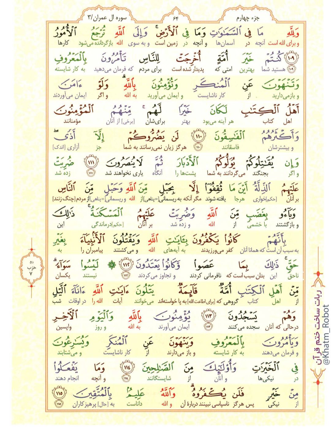 آیات نورانی 109 تا 115 سوره «آل عمران»