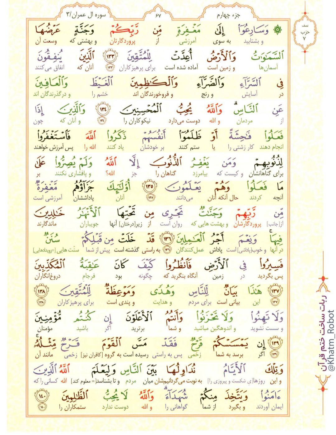 آیات نورانی 133 تا 140 سوره «آل عمران»