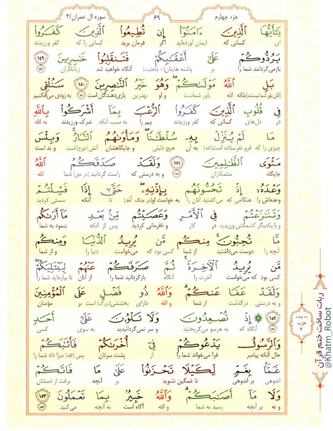 آیات نورانی 149 تا 153 سوره «آل عمران»