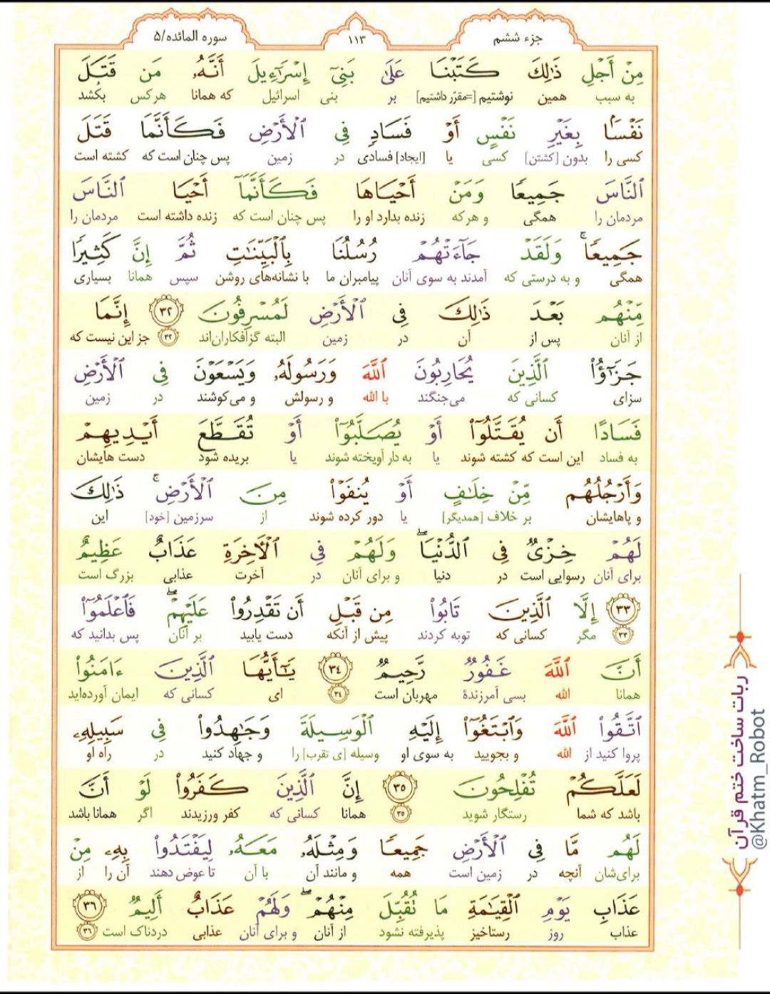 در هر صفحه از قرآن، نوری نهفته است که تاریکیهای دل را میشکافد و امروز نیز با صفحه 113 از این کتاب آسمانی، دل را به زلال کلام الهی میسپاریم.