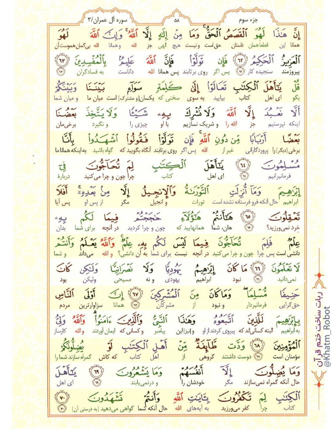 آیات نورانی 63 تا 70 سوره «آل عمران»