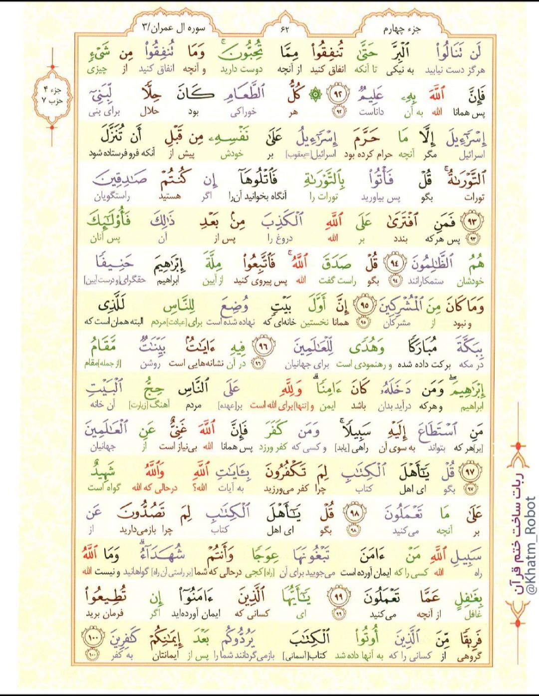 آیات نورانی 92 تا 100 سوره «آل عمران»