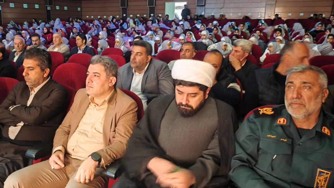 در میان لحظات پرشور مراسم، صحنهای عاطفی و تکاندهنده رخ داد؛ هنگامی که چند دانشآموز خانواده شهدا با قاب عکس پدران شهیدشان بر روی سن حاضر شدند اشکهای بیاختیار یکی از آنان، بغض و اندوه را در دلها شکوفا کرد و چشمان سردار قیصر امیدی فرمانده سپاه، نژاد جهانی فرماندار و دیگر مسئولان را نیز خیس از اشک ساخت این لحظه تجلی عمیقترین پیوند میان نسل امروز و میراث جاودانه شهیدان بود؛ پیوندی که نه زمان و نه فاصله قادر به گسستن آن نیست.