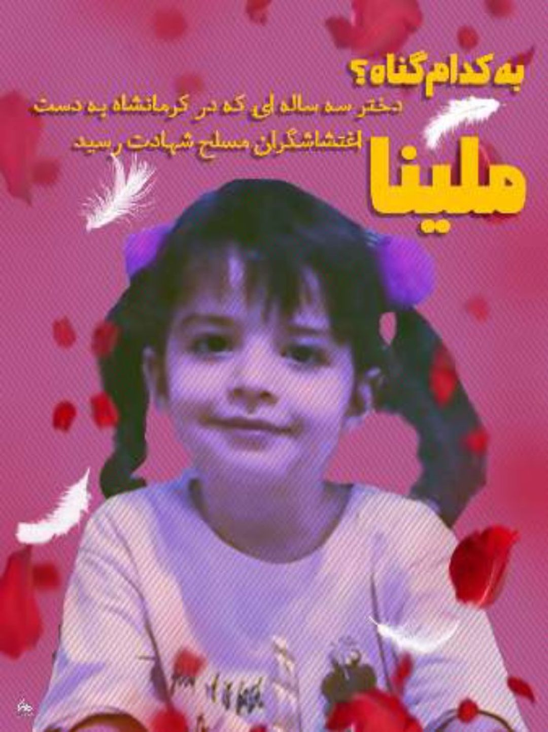 ملینا دختر سه سالهای که در کرمانشاه توسط اغتشاشگران به شهادت رسید.