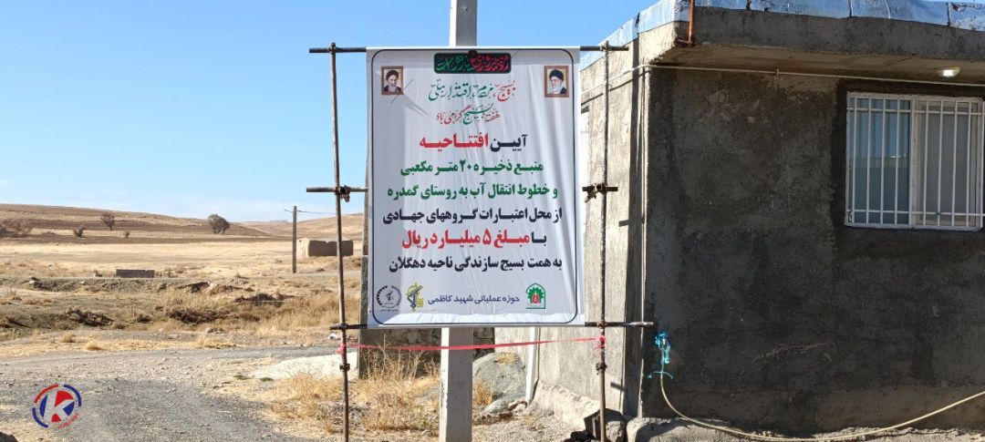 به گزارش خبرنگار گروه اجتماعی پایگاه خبری تحلیلی «کردتودی»، در طی مراسمی منبع ذخیره ۲۰۰ مترمکعبی و خط لوله انتقال آب به روستای گمدره با حضور فرمانده سپاه بیتالمقدس کردستان، فرماندهان نظامی و انتظامی، مدیران و مسئولان شهرستان دهگلان به بهرهبرداری رسید.