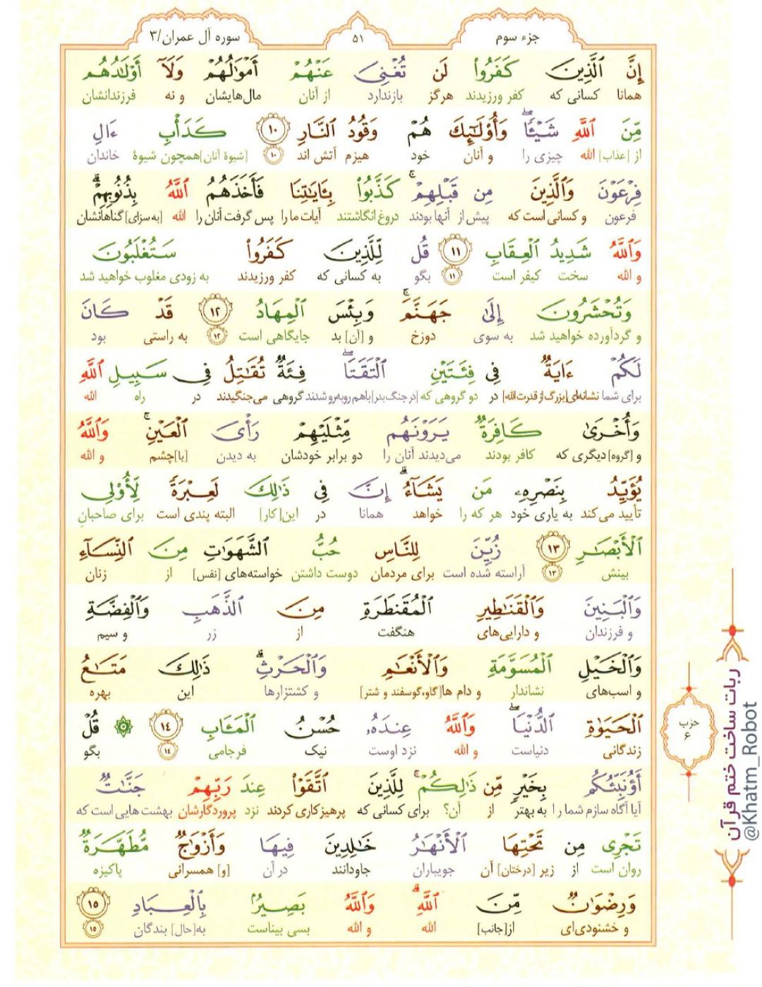 آیات نورانی 10 تا 15 سوره «آل عمران»