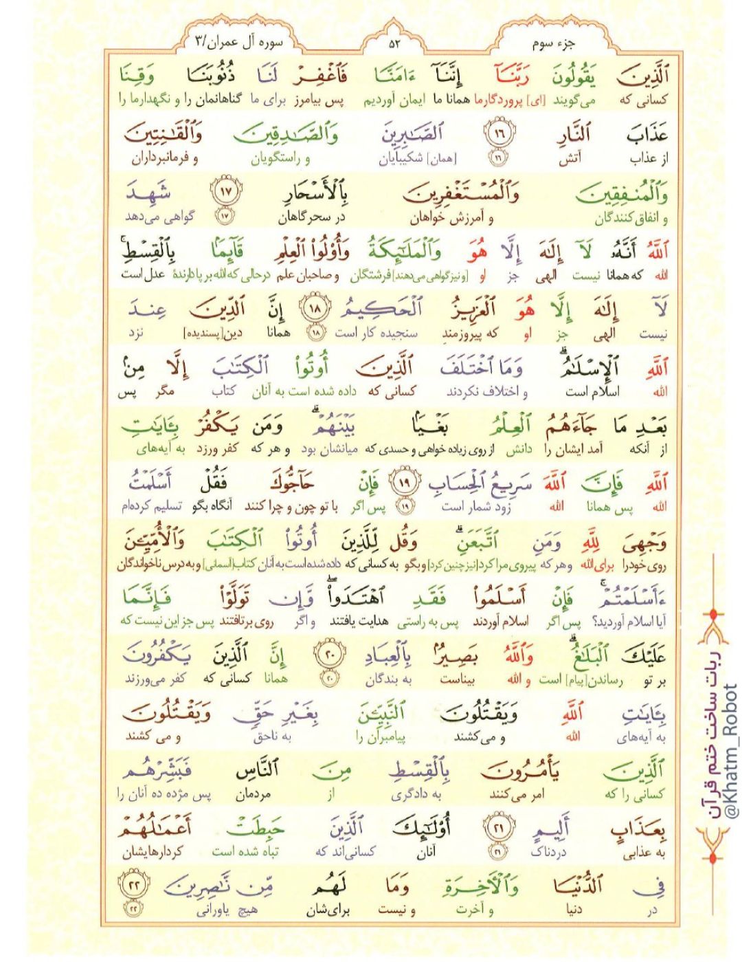 آیات نورانی 16 تا 22 سوره «آل عمران»