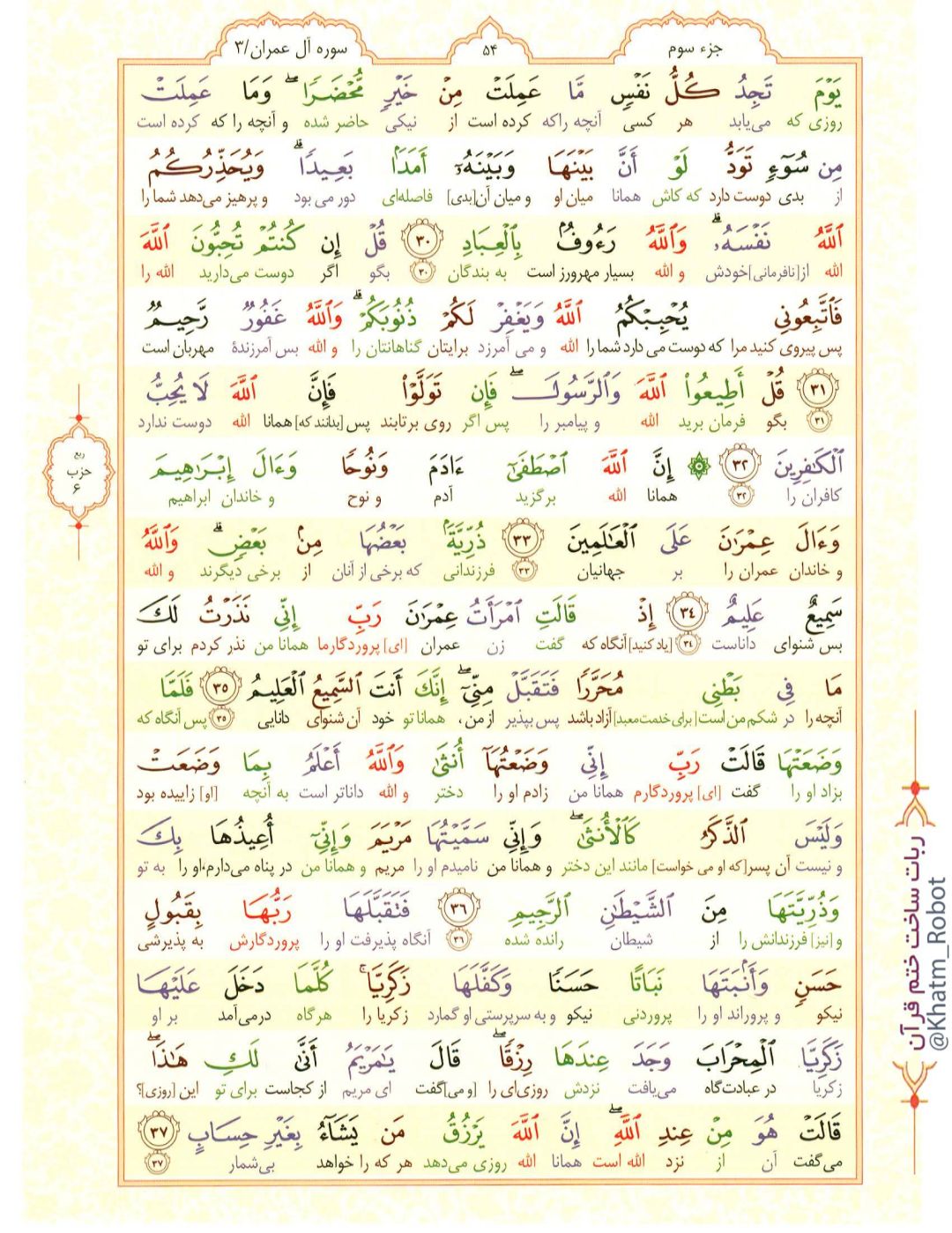 آیات نورانی 30 تا 37 سوره «آل عمران»