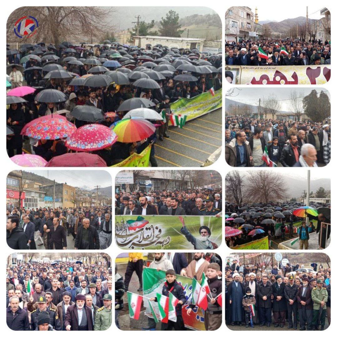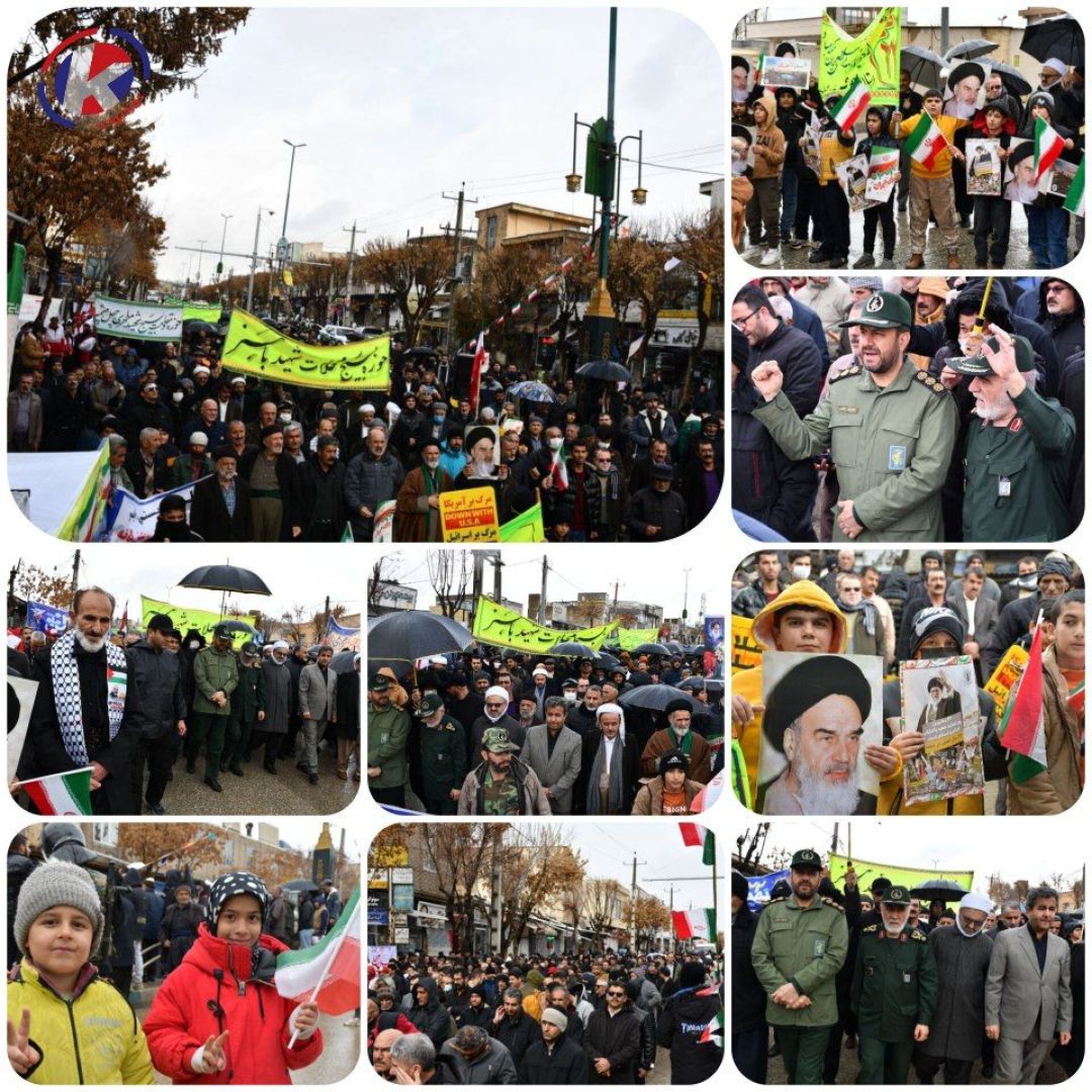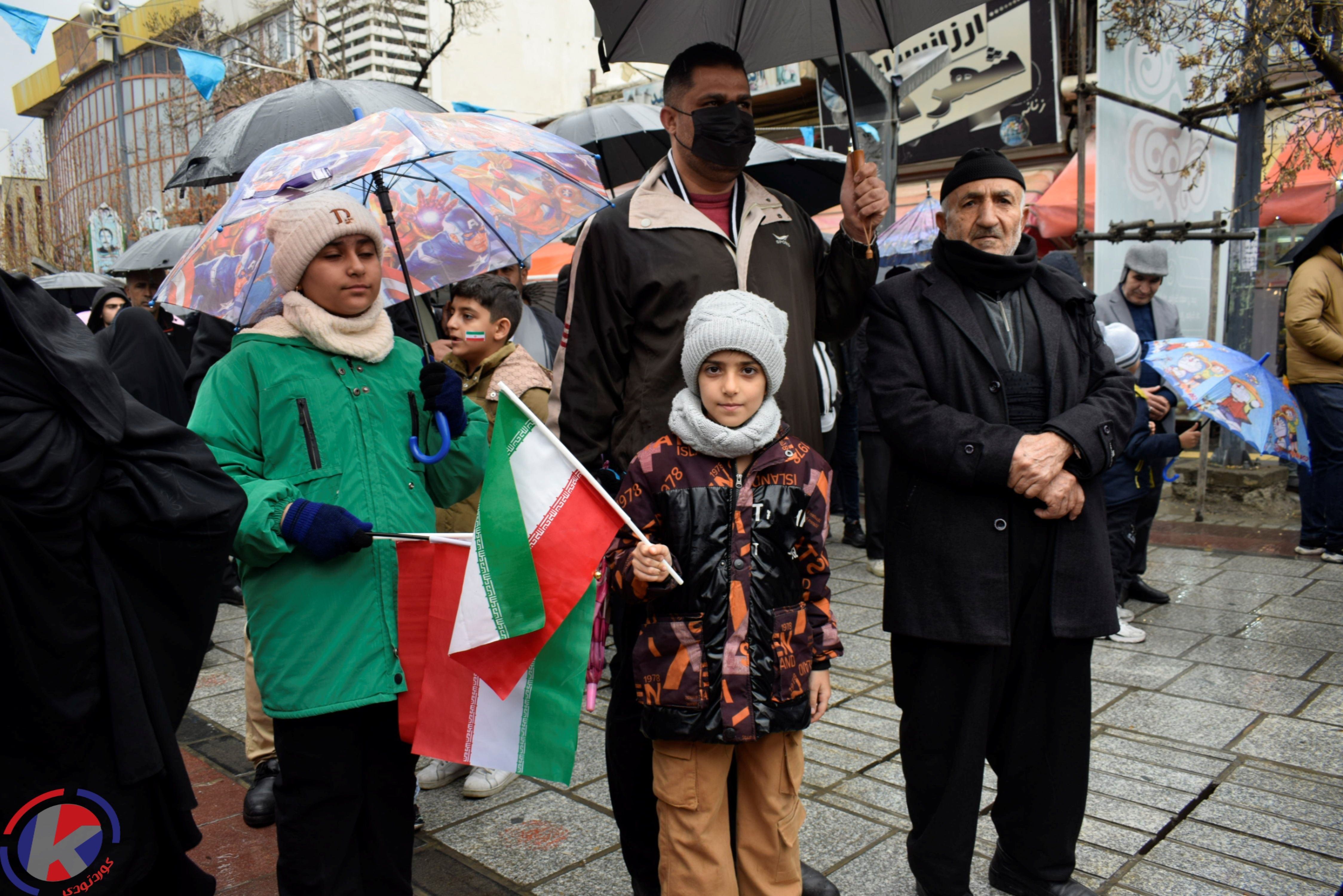 همزمان با سالروز پیروزی انقلاب اسلامی، راهپیمایی یومالله ۲۲ بهمن در کردستان در حالی که باران بر شهر میبارد، با حضور اقشار مختلف مردم برگزار شد.